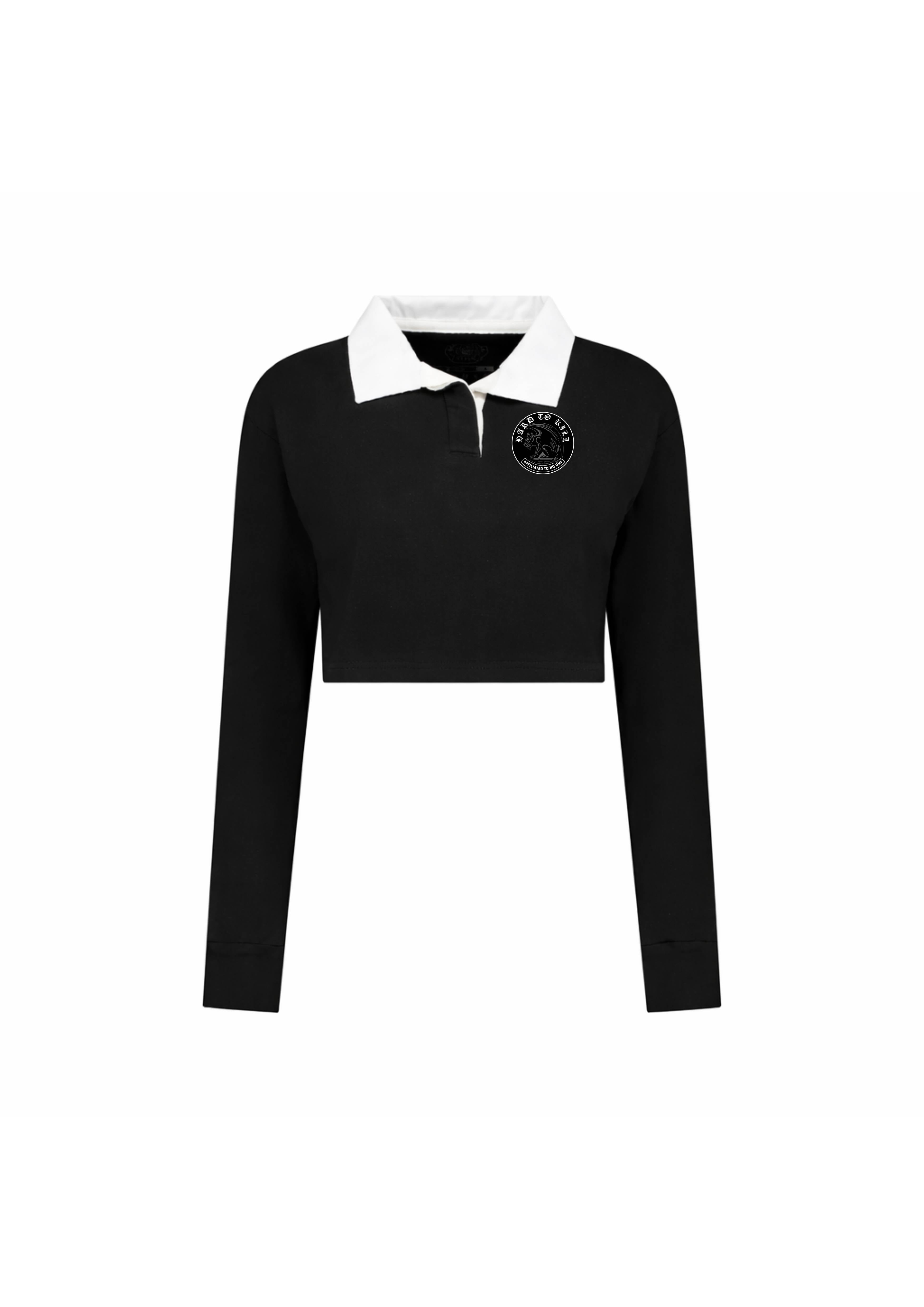 The Sovereign Cropped Jersey is a structured rugby silhouette, reworked with a raw-cut hem for a sharper profile. Cut from heavyweight ring spun cotton, it carries the presence of a lifestyle uniform with the durability to handle training when required. The woven rugby collar and reinforced cuffs maintain structure under pressure, while taped shoulders keep the fit defined.